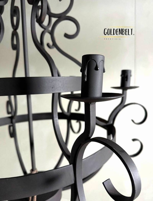 De kroonluchter beschikt over 6 kaarsvormige fittingen die, wanneer ze branden, zorgen voor een warme, sfeervolle lichtverdeling. De sierlijke kruldetails geven de lamp een romantische en toch ook een stoere robuste uitstraling, terwijl het stevige metalen frame zorgt voor kracht en stabiliteit. Perfect voor wie houdt van een interieur dat stoer, klassiek en elegant tegelijk is.