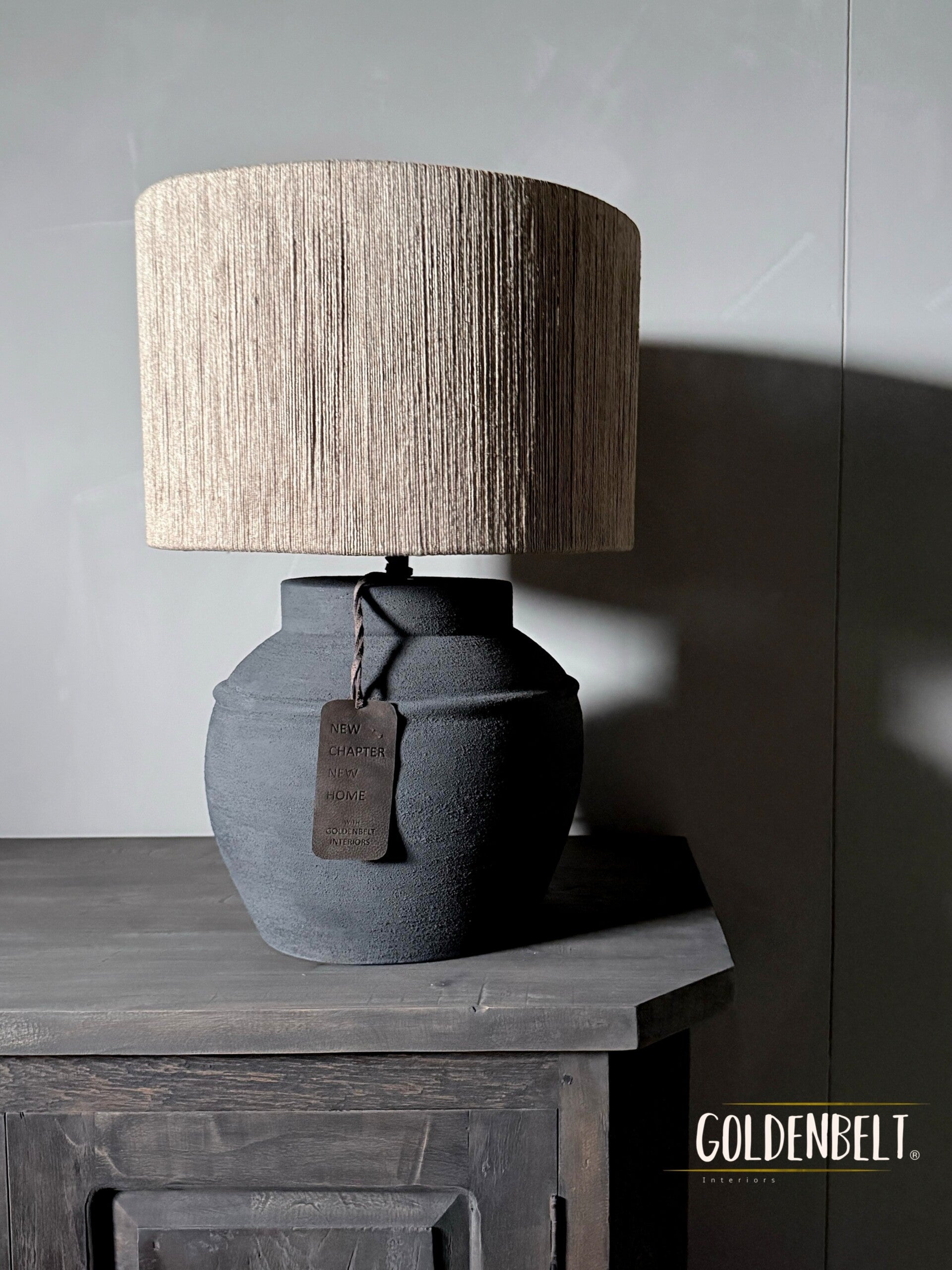 De Mati tafellamp van Goldenbelt Interiors is een ingetogen ontwerp waarin ambacht en eenvoud samenkomen. De handgevormde aardewerken voet heeft een matte, doorleefde uitstraling die direct verwijst naar natuurlijke materialen en rust. De jute lampenkap verzacht het geheel en verspreidt een warm, diffuus licht dat bijdraagt aan een kalme, landelijke sfeer.